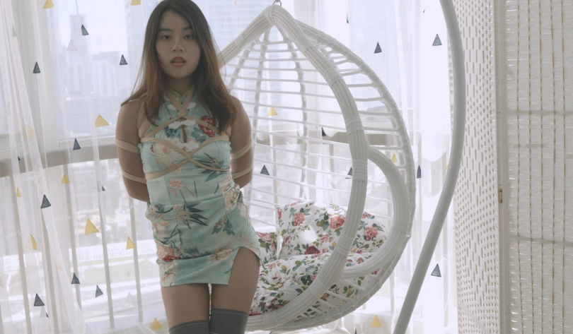 › 【4K映像】琪琪的夏日午后,摇篮,旗袍,长筒袜,高跟鞋,丝袜勒嘴,五花大绑。