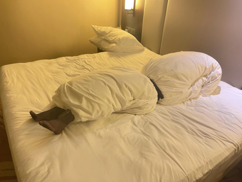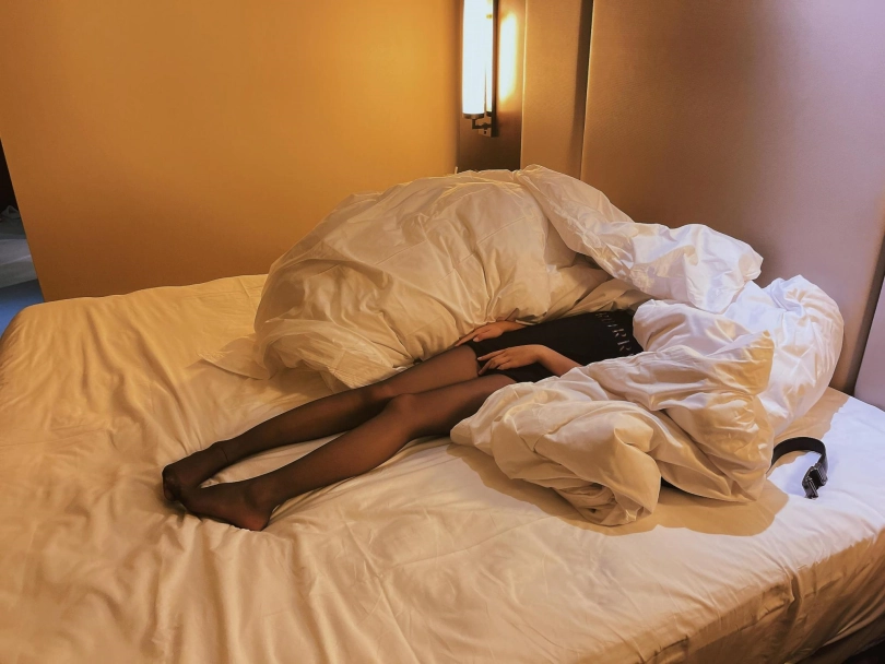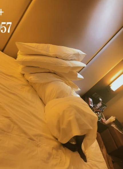 场景2:OL风格黑色衬衫+黑丝,棉被全包,皮带拦腰勒紧。主打性感风格,纤细修长的大长腿大部分都露在棉被外,拼命踢蹬挣扎,可爱极了~