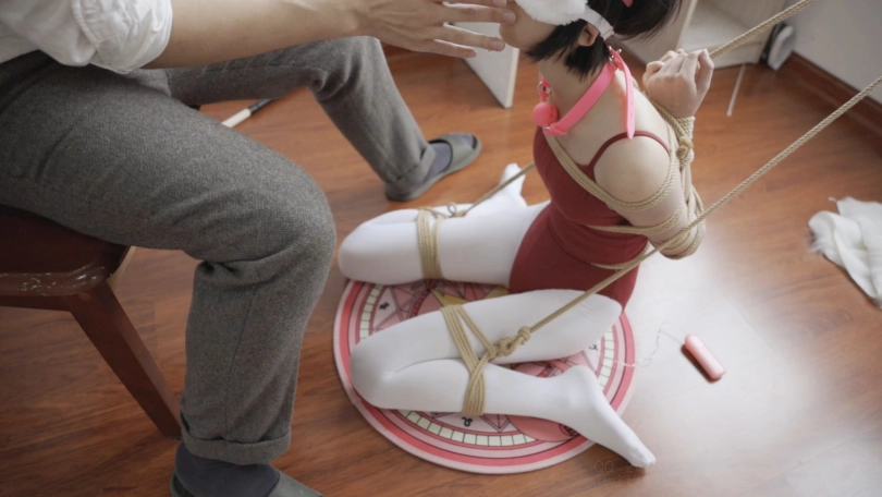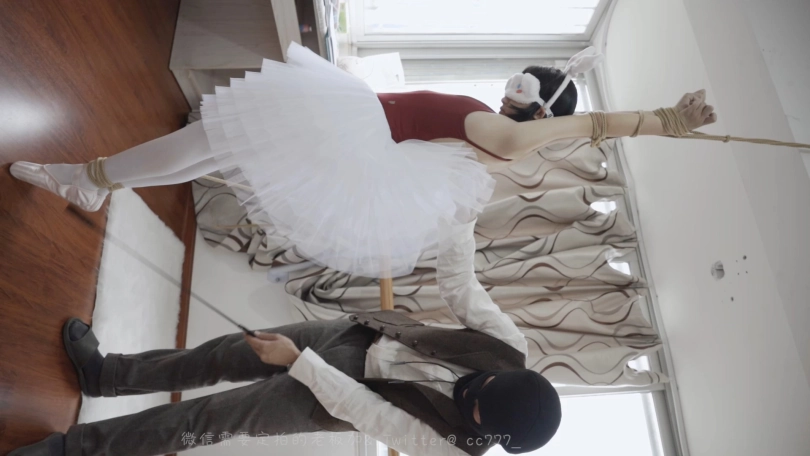 在把双手绑上舞蹈杠吊腿,强制压脚背,同时旋转按钮开启粉红小td伺候,手和腿都折磨完了该进行口活训练啦,命令安妮鸭子坐后把她绑个后手合掌缚然后把她抱上桌子模仿了p站著名画师mi酱的作品,这货吊腿的时候直接给虐哭了哈哈,
