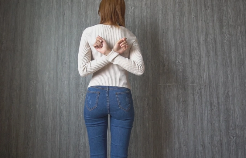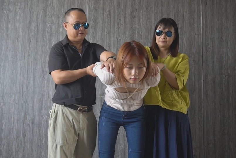 紧身毛衣紧身牛仔裤尽显模特好身材,OL裙装又能给人以成熟的诱惑。反扭,押解,捆绑等。