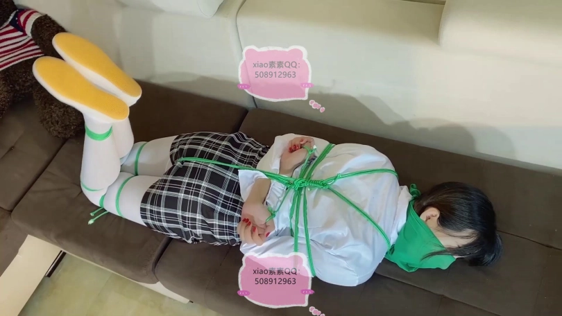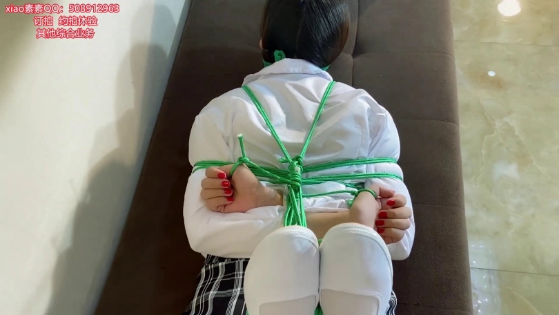 【xiao素素】白丝格子群白衬衣,绿色面纱绿色绳子驷马捆绑挣扎