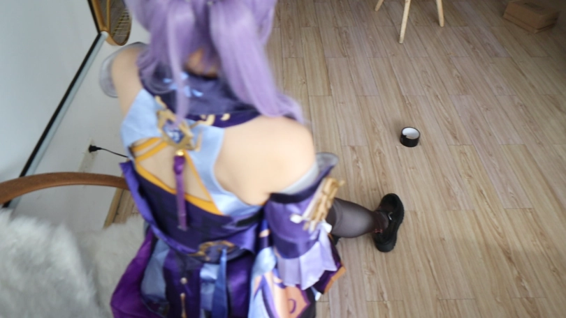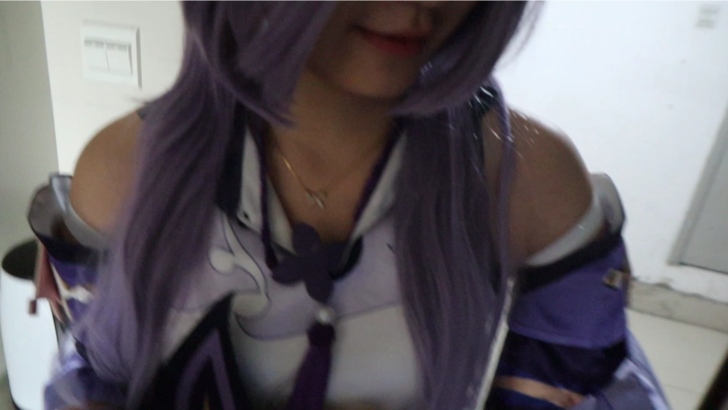换了一套原神刻晴的cos服,到了相应的地点 女coser被摄影师请上门,