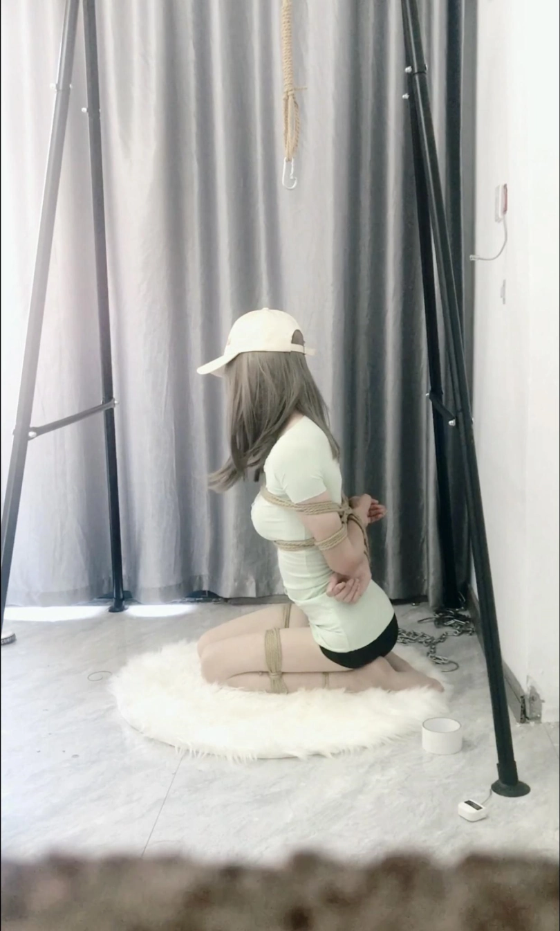 本来想是在上次那样吊着的方式基础上加上这样的股绳的,但是上次确实手臂非常疼,就这样简单的尝试了一下,有些简陋但是难受了还是一样的难受的,这块砖想吊高点的,因为老是碰撞着自己的后背,很不舒服。结果太重了,而且只能捆上双腿之后才能加这个股绳,不然慢慢捆上双腿时间太长了很难受,所以捆上双腿之后就站不起来了,活动受限,要是太高的话我拿不起来。一个人完成有些不美观见谅,下次有足够的时间在慢慢尝试拍摄~