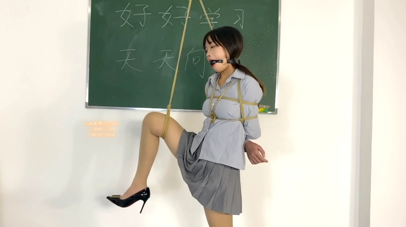 Jk 小制服 素素来了 日式捆绑 单脚吊 堵嘴换了多种方式 开口器 口伽 硬口球