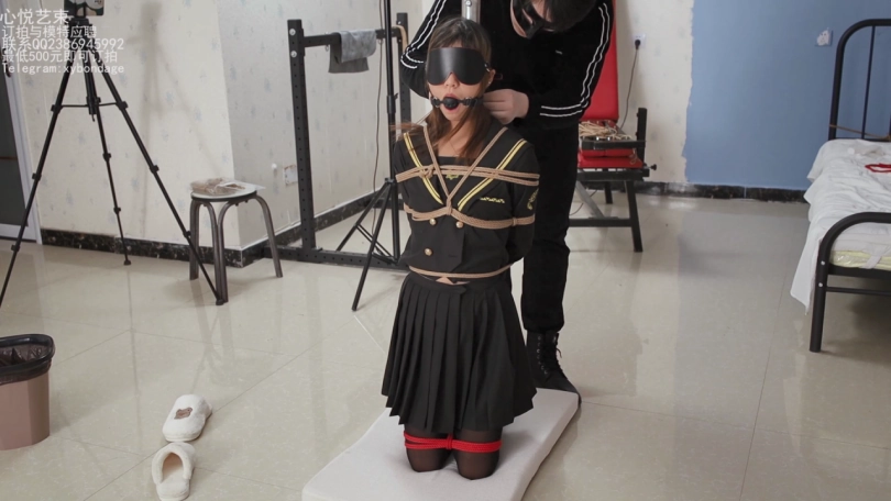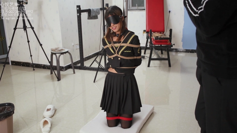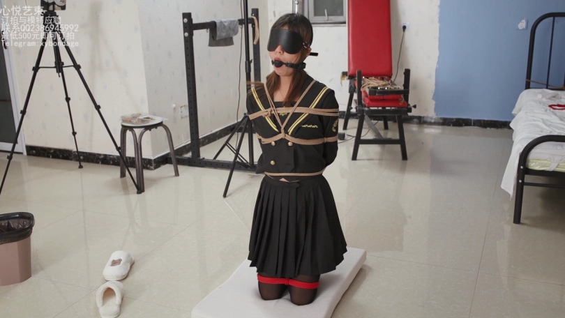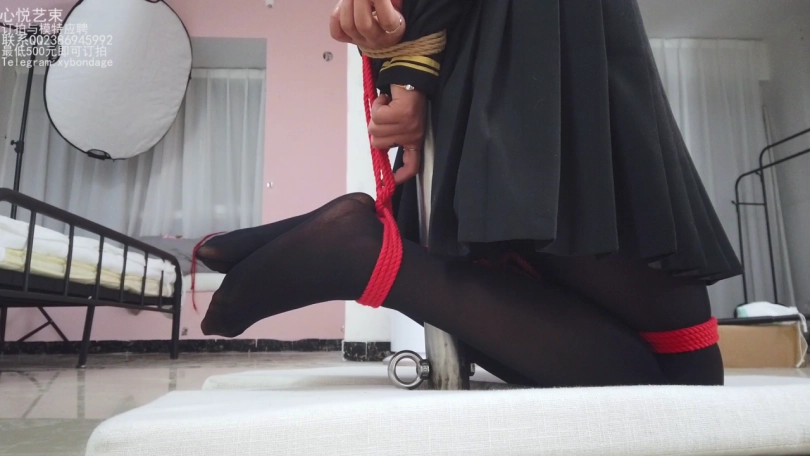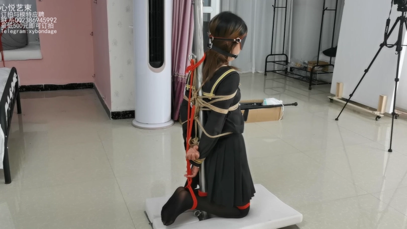 这个是小学妹苏苏试镜时候拍摄的第二部,后手缚整个身子绑在柱子上,跪在地上后面的小脚吊起来玩。