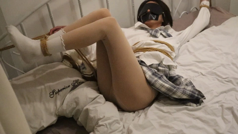 干脆利落的短发温柔一刀的JK短花边白棉袜与亮黑皮鞋 大字型绑床