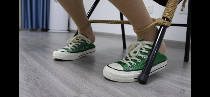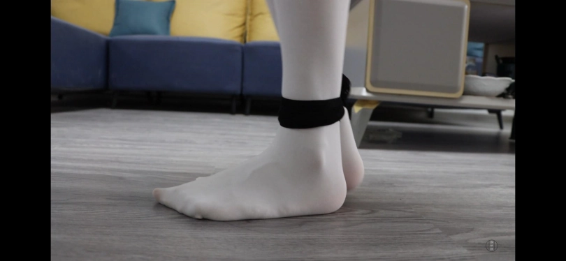 男绑住南羽的脚,让其绕着周围转两圈。(可用丝袜,不过要看起来要稍微紧一点)