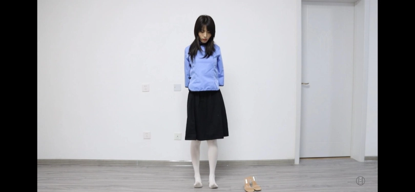 男人将南羽绑在椅子上,男人将其双腿分别绑定在椅子两边,双手身前拷住,各套着丝袜,手肘用丝袜或是绳子绕住,让大臂抬不起来,让南羽念古诗。