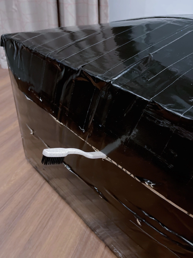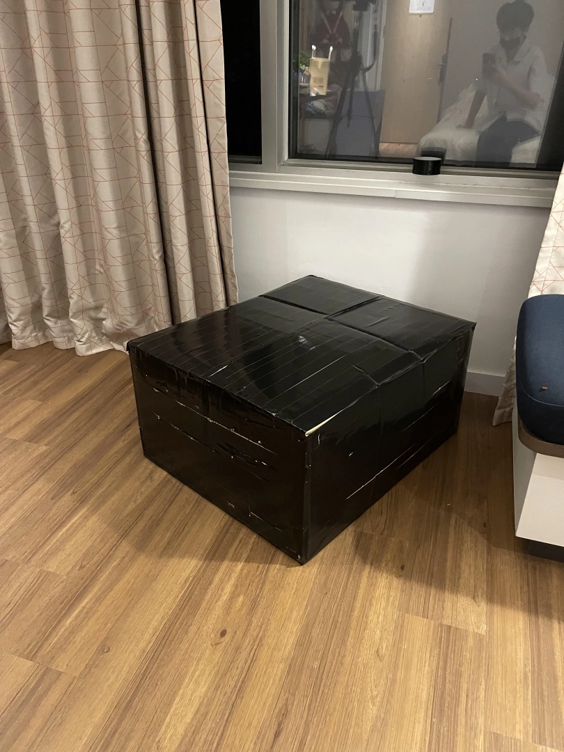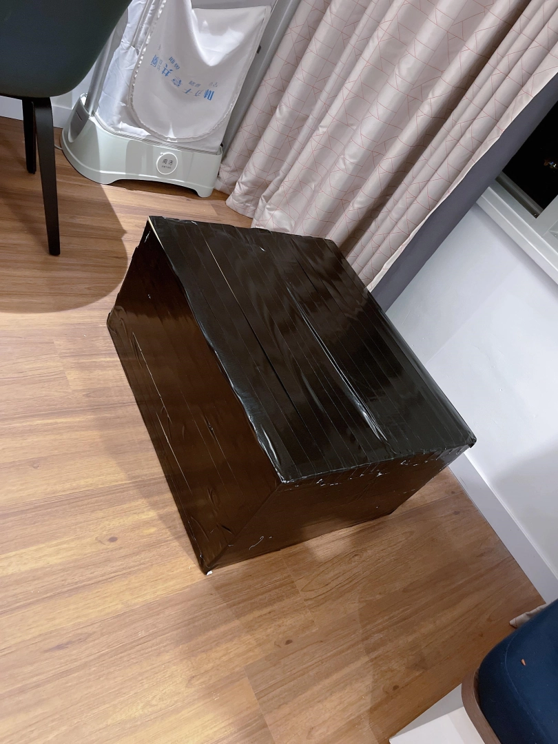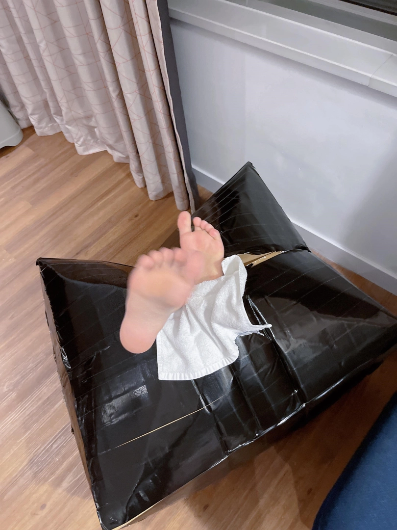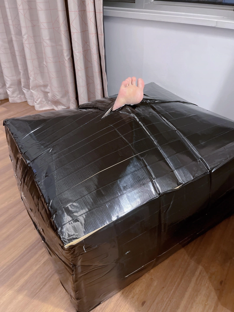 打算把可爱的死库水泳装裸足小萝莉茶茶装进这个箱子里,用胶带完全封住整个箱体。六面全被胶带包裹的结结实实。