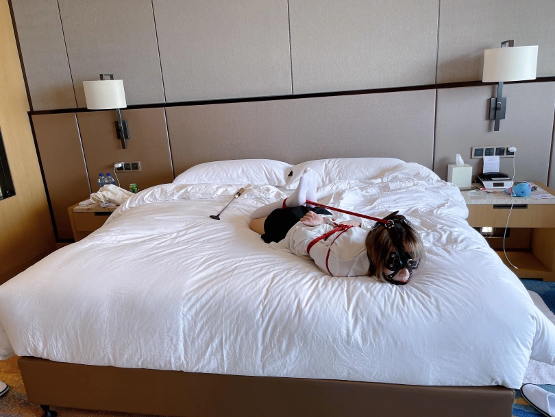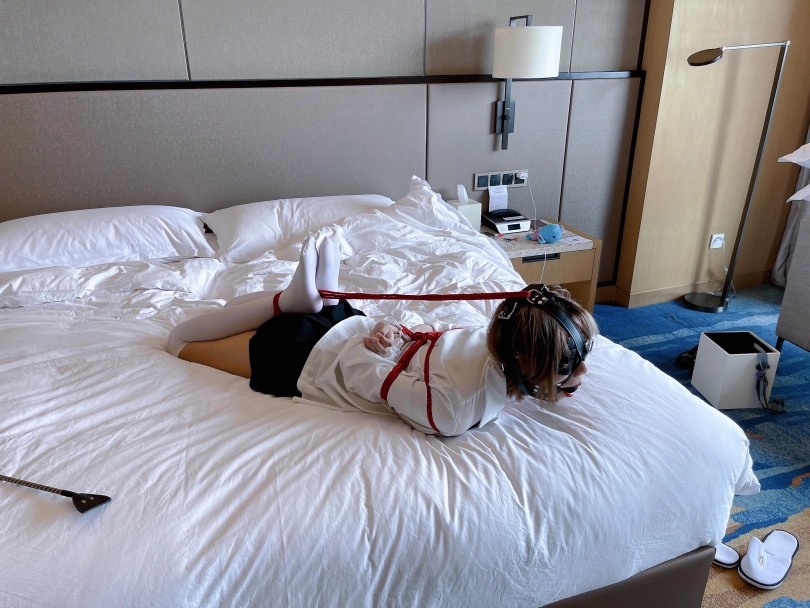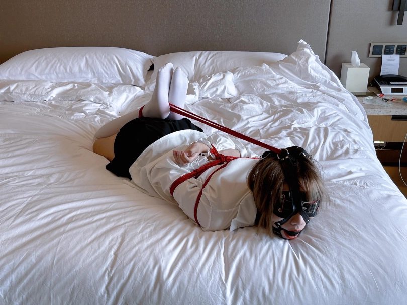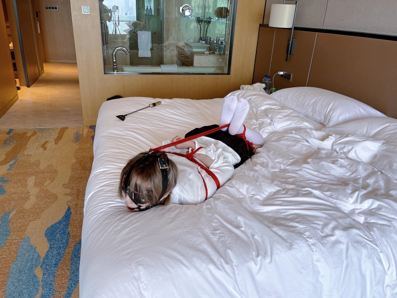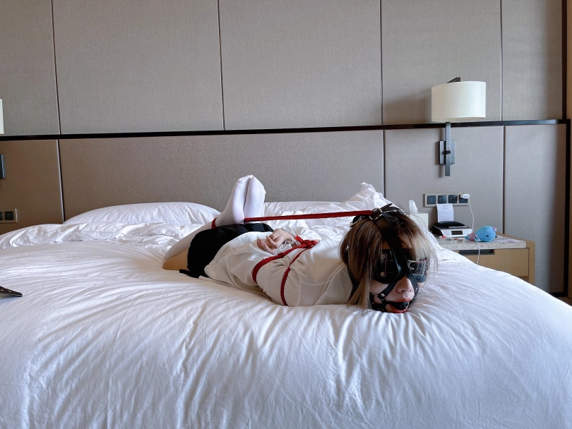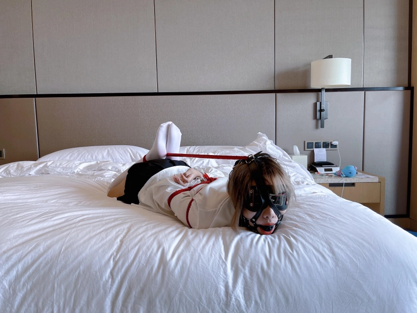 让可爱的小萝莉带上马具口球,大小腿捆在一起后还要绑个驷马,并且用绳子把脚腕和头顶的铁环连接起来——一个动弹不得、被迫抬头,连脖子都动弹不得的小宠物就做好啦!