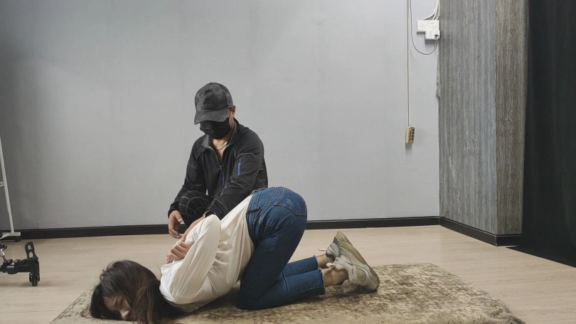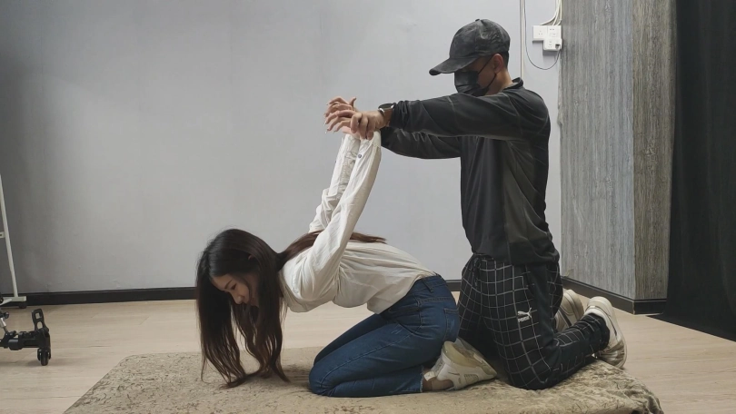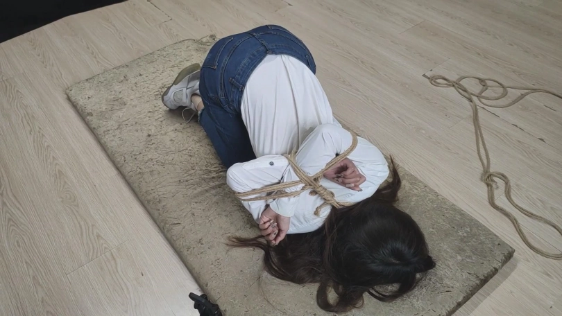 【美束映画】笑容甜美的妹子,柔韧性是真的棒,跪趴在地上捆起来,这次让她尝试一下紧缚的感觉。