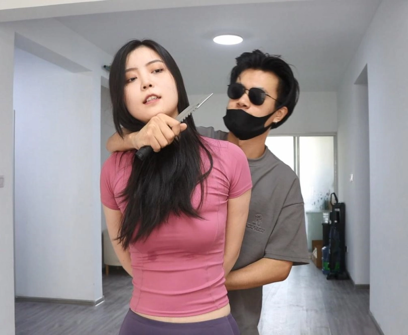 175高个健身教练在家运动,突然有人敲门,被歹徒袭击绑架。