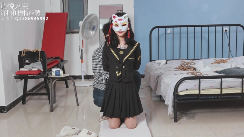【心悦艺束】肉丝可爱小狐狸被日式后高手束缚在铁柱子上面,吊起双脚挠脚心,腋下,腰部。小家伙是真的很怕痒啊hiahiahia