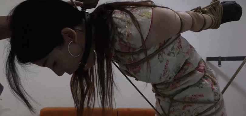 这部是被调查的美女经理番外篇,其实剧情还是不错的,就是整体感觉这部还是拍摄的不够好,特别是前两集,也可能是发送剧本的时候一些细节没有说清楚,导致捆得太简单了,没有想象中那么好。番外篇是根据前五集柳洋被关押监禁五天,在最后一天柳洋以为自己真的要被关押之后,最后才知道原来这是会所为了保持神秘感而演的一出戏,最后也是体验了几天愉快的结束了这场监禁体验。(新剧本也是正在讨论当中,也有很多小伙伴提了宝贵的意见,感谢大家的建议,提得建议也是会逐一采纳的。)这集剧情大概就是体验过后,会所向柳洋发送了特殊邀请,作为特别体验嘉宾进行一次捆绑。本来是要捆绑过程的,也可能是没说清楚也是不满意的一点。短暂的交流之后,会所老板对柳洋上半身进行了龟甲缚,手掌也是被纱布包裹起来,然后进行了直臂捆绑,将她的双手高高的吊了起来,让柳洋不得不保持一种难受的姿势,直到踮起脚尖,在在她的胯下捆了一道绳索,让她只能踮起脚尖,一旦将双脚放下便会拉动胯下的绳索非常难受。会所老板还在不时的拍打抚摸柳洋的臀部大腿,不断的挑逗着她。
