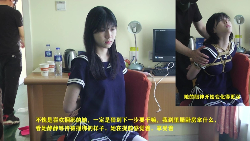 有趣看点之一:22:38处,我把她的手反扭到背后,她应该猜到下一步是要干嘛,我准备拿什么,她静静等待被捆绑的样子很有感觉,后面全程是她享受捆绑过程得表情,逐步升级,中间我无意发出的声音有点雪村春树得意思,确实成老头了。
