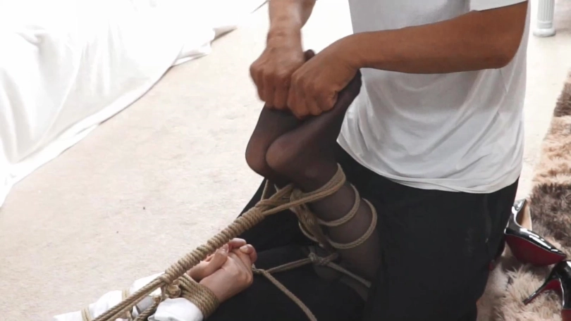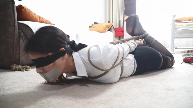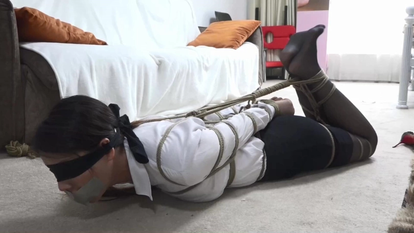 朱甲第走之后,再用丝袜蒙住眼睛,嘴巴依旧丝袜胶带)