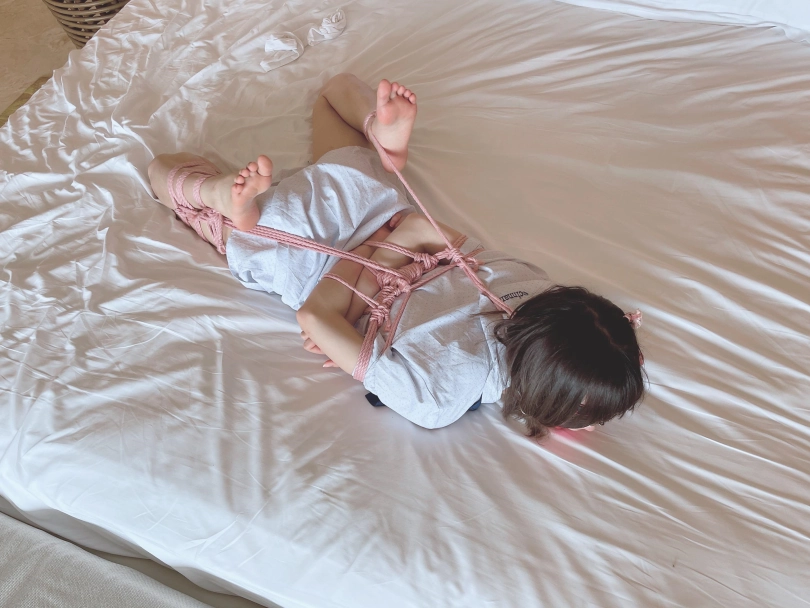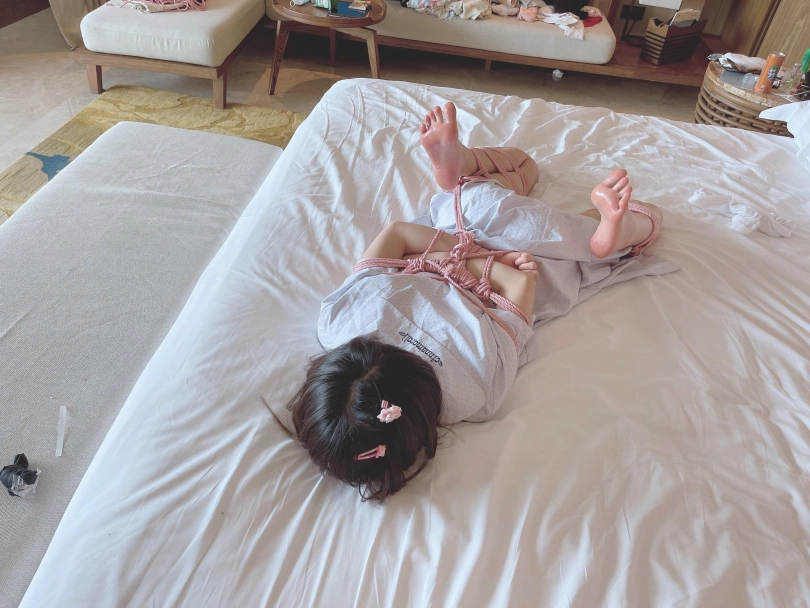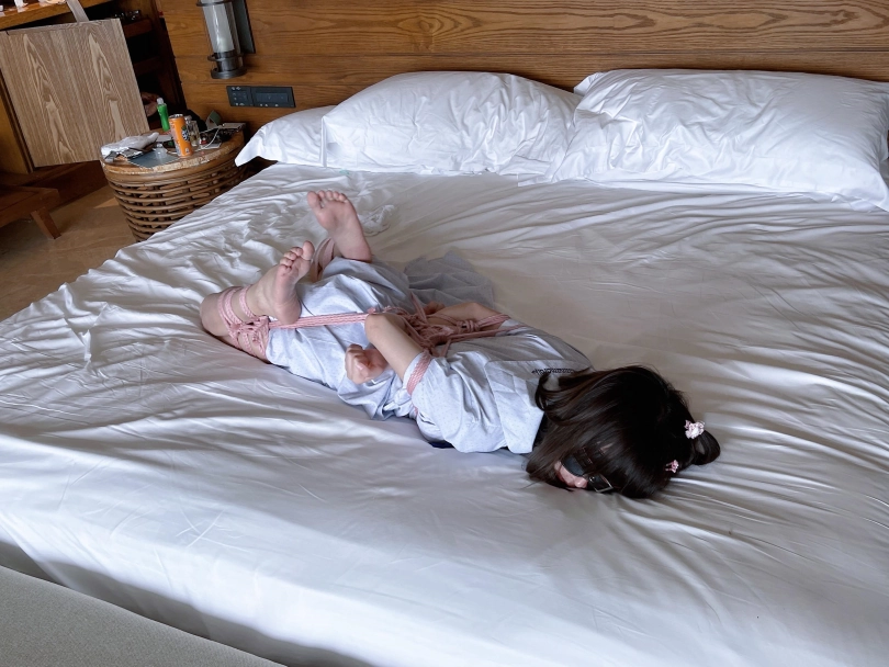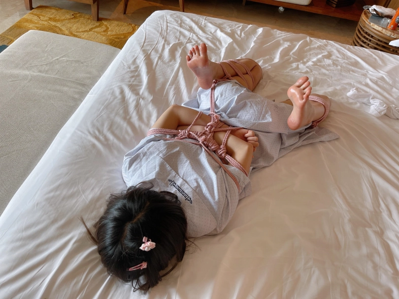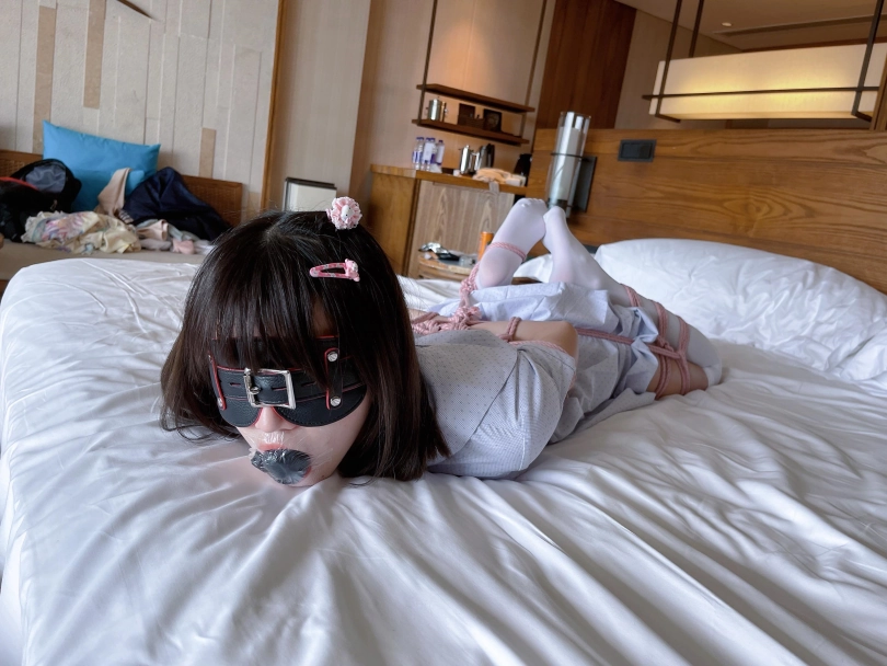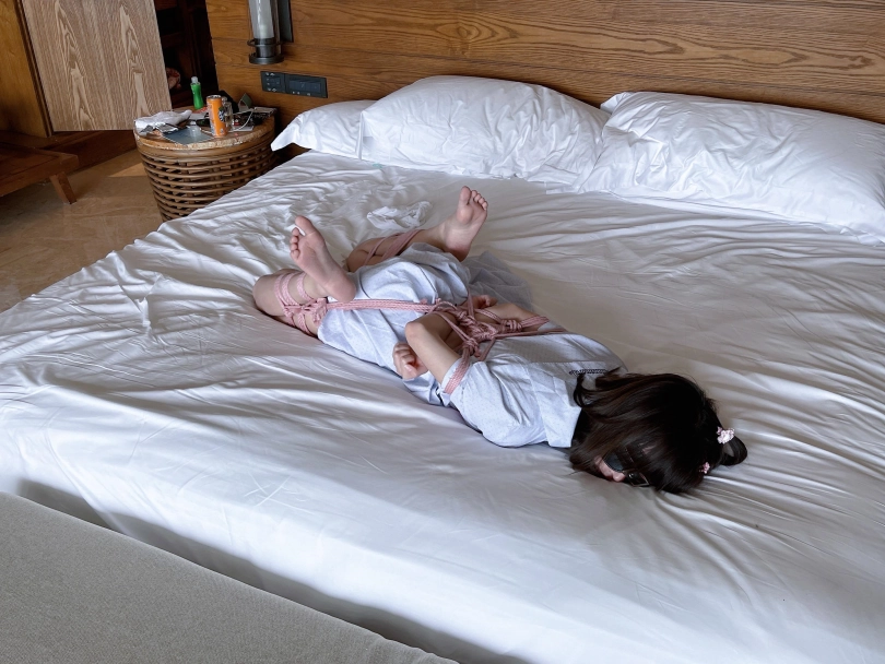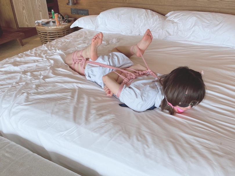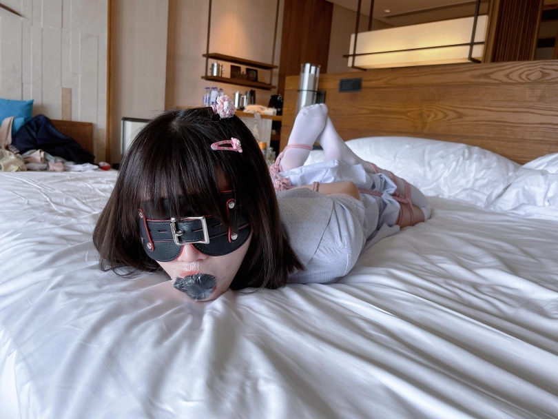 “唔~咕..唔唔!”少女迷迷糊糊的恢复了意识,却发现眼前一片漆黑,什么都看不见。想要坐起身来,身体却完全不听大脑的指令,手脚都被紧紧的收拢在背后,乖乖的以驷马躜蹄的姿势被紧缚在床上。茶茶想要大声呼救,却发现口腔早已被自己穿过的丝袜填满,谨慎的男人还用医用辅料粘住了茶茶的小嘴,医用辅料的粘贴力度严丝合缝,仿佛与茶茶的皮肤融为一体....