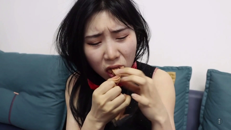 (五)遭到男友背叛又被挣脱的闺蜜柳洋捆堵更紧的吴晗在黑暗中剧烈挣扎,最终弄松绳结,撕掉封眼自粘绷带和胶带,一点点拽下嘴外自粘绷带和胶带以及黑色宽胶布,厌恶地拽出口中柳洋穿过的原味臭深肉色锦纶丝袜丢掉了,吴晗边大口喘气边自言自语说要报复男友和柳洋这俩人,让他们等着。