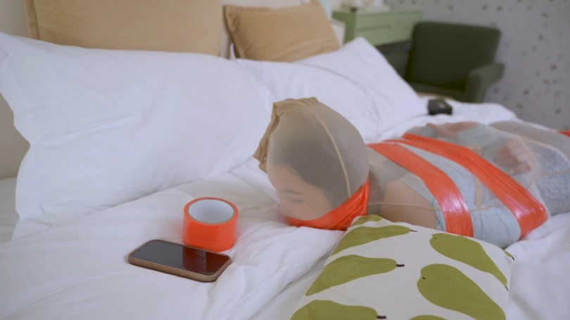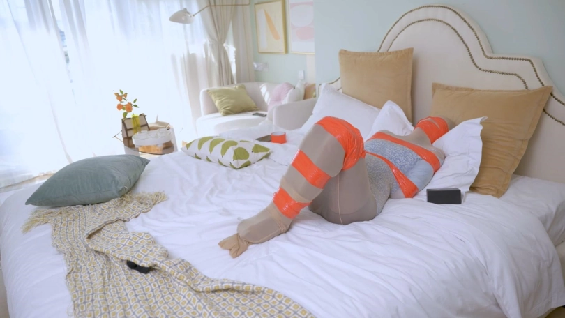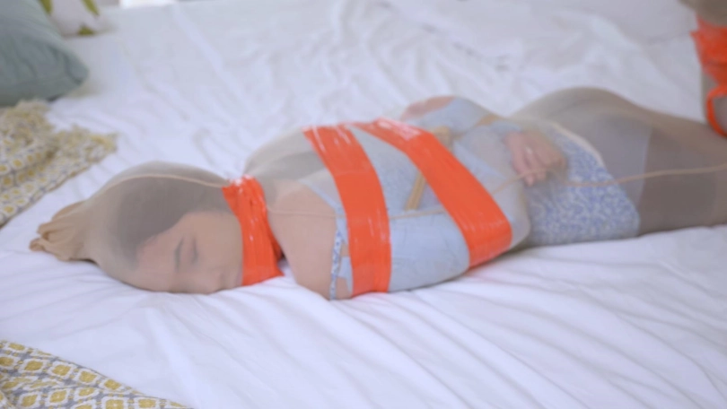 黑丝间谍潜入房间,被发现后密集捆绑,努力挣扎逃脱求救,但最终由于捆绑过于严密根本没法逃脱。