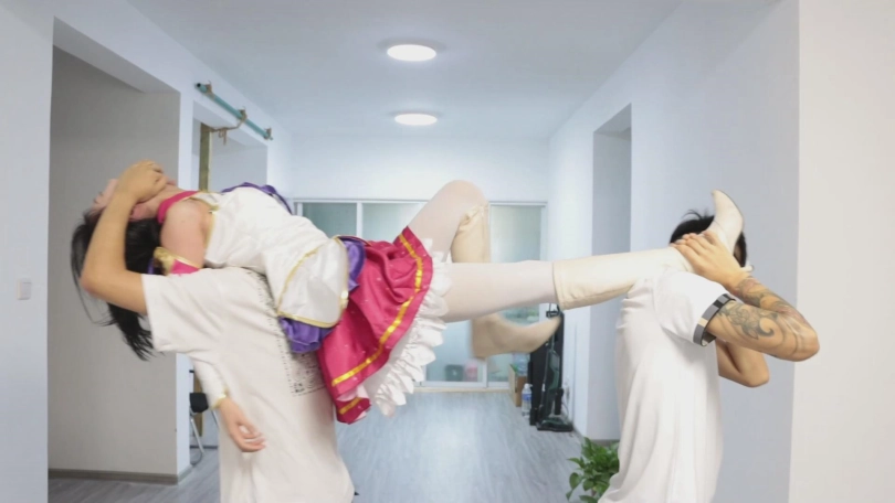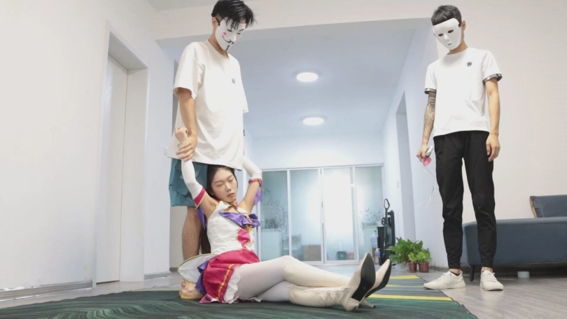 魔法少女琪梦遭到两位面具人围殴,不敌被虐,最后惨被扒光示众。