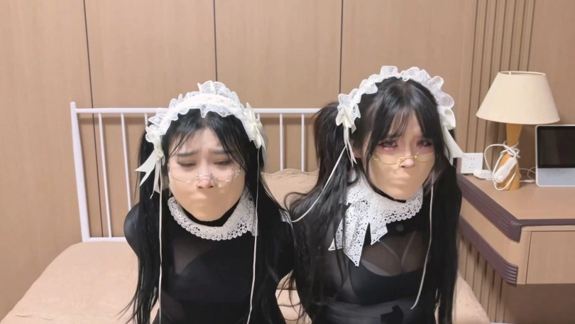 曼妮和吴晗被强制打扮成性感的女仆抱枕,绝美的妆容却无法动弹,只能像肉虫一样在床上蠕动,她们必须在规定时间内挣脱开,否则就会被永久包裹玩弄