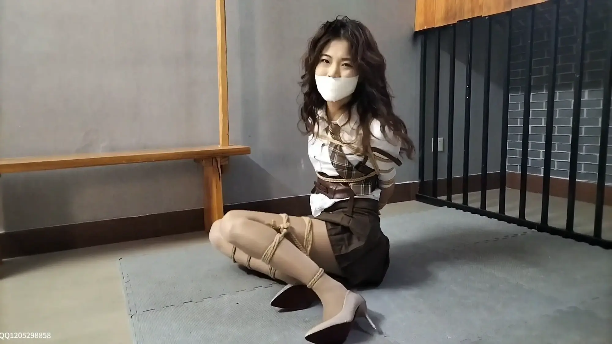 被重新欧式捆绑,M腿捆绑,再胶布封嘴的希潼,