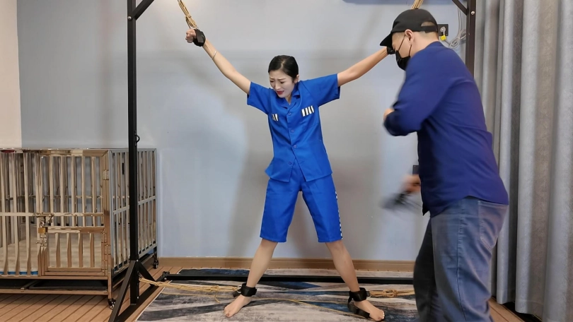 女犯李佳佳被各种刑法审讯,大字捆绑,后手吊,老虎凳,后手观音驷马放置,最后关笼子