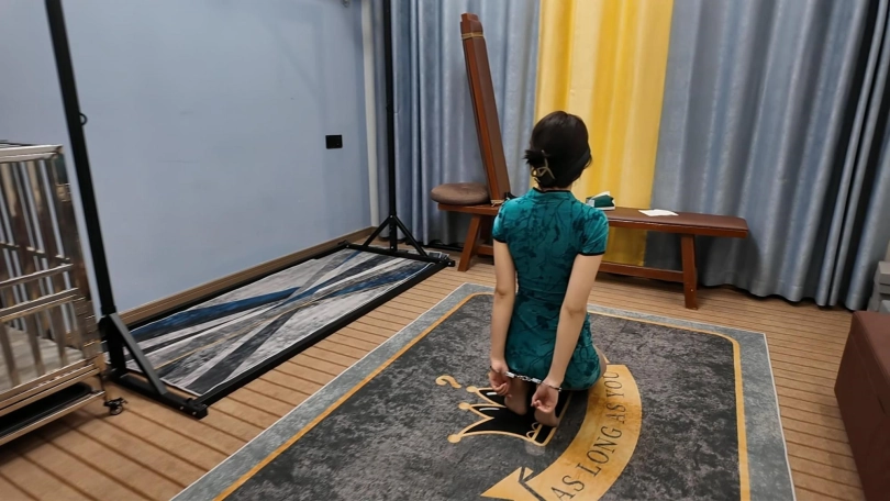 晓琴穿着性感的情趣内衣被主人牵到笼子里面,带上口伽收集口水,主人上班,下班回来之前收集不满口水处罚......换上旗袍,带背拷,蒙上眼睛等待主人捆绑惩罚
