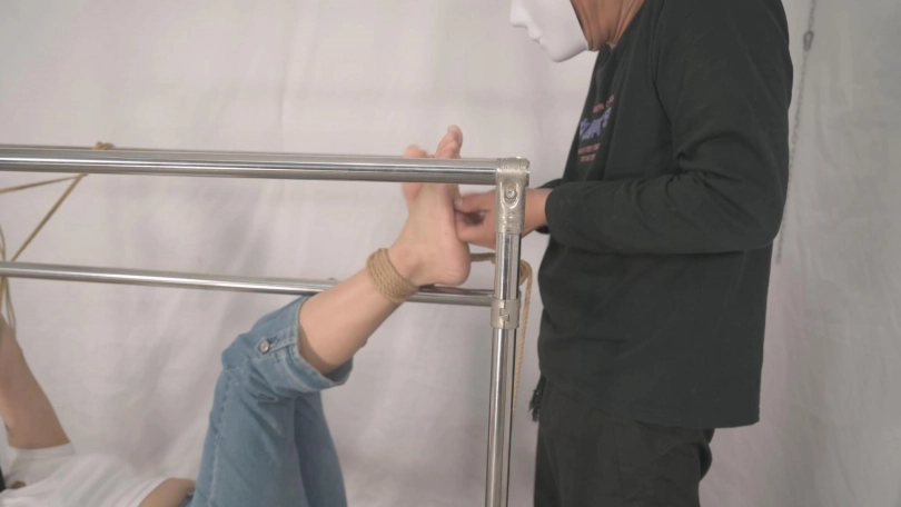 雪碧终于渐渐领会了本导的谆谆教诲,让她自己想象被绑到缅北,马上遭受凌辱的情况下,自己会是什么样的反应,因此她现在被捆绑后的挣扎、扭动、试图逃跑的举动,可怜的小眼神,以及被欺负时带着哭腔的呻吟等每一个细微之处都是那么真实自然的反应,而这些反应恰恰都是我想get的。看她的演绎,全程都有感觉。本片开始的捆绑过程没录上,一开始就是放置挣扎和动听的呻吟,她还挑了这双她穿上漏趾缝的高跟,裸足穿高跟,都是喜欢的菜,而且雪碧最大的弱点就是怕痒,本次好好让她享受一下TK,搞得本导互动时也冲动连连,还有一小段有意思的NG放在最后,适合收藏慢享。