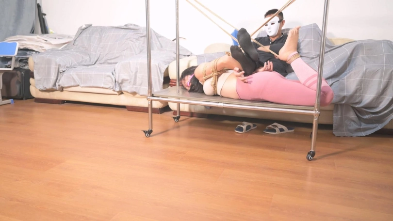 查看完整版本: 【撒琅制造】绳模沐小雨铁架小车驷马缚--瑜伽服、运动鞋、口球、抚摸、趾缝TK