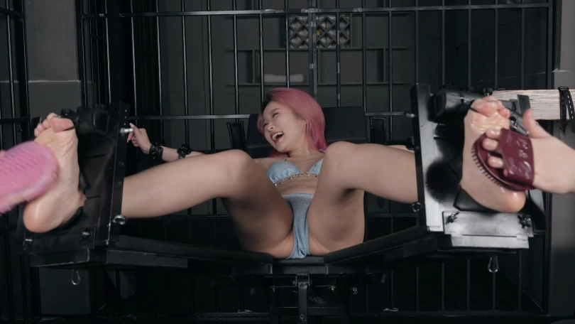 剧情故事:夕颜在好利来上班,有一次澳门买面包遇见了她,看着眼熟就问她是不是在我这里拍过视频。就再次邀约她来拍摄。老朋友再遇,她别有用心的穿了套比基尼,跟她的工作服太相衬了。还是一如既往的怕痒、敏感。脚摄师傅准备好好的照顾她,把她绑在刑椅上,用各种道具挠她,还强制天她腋下。看她挣扎的样子,太爽了。