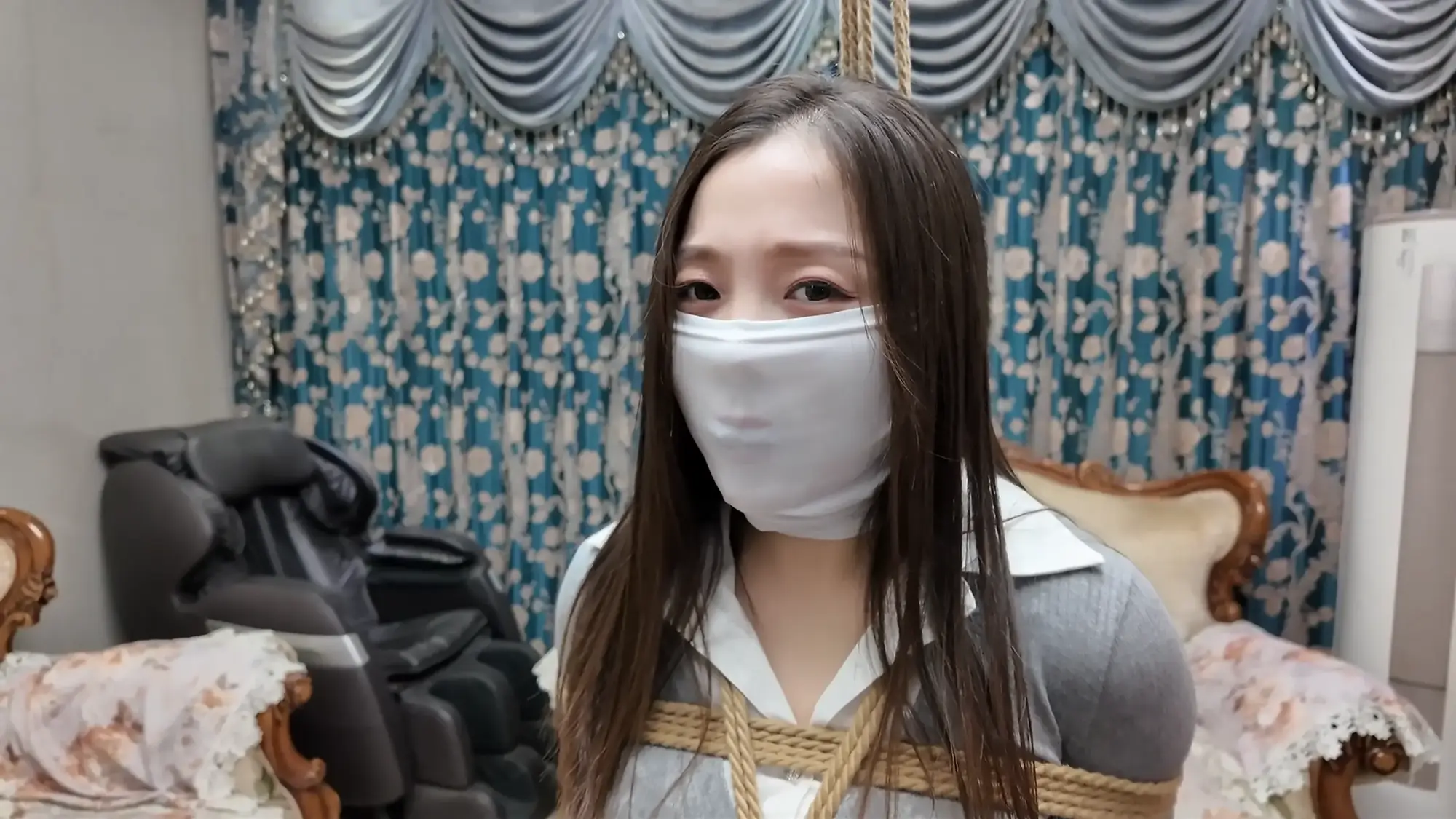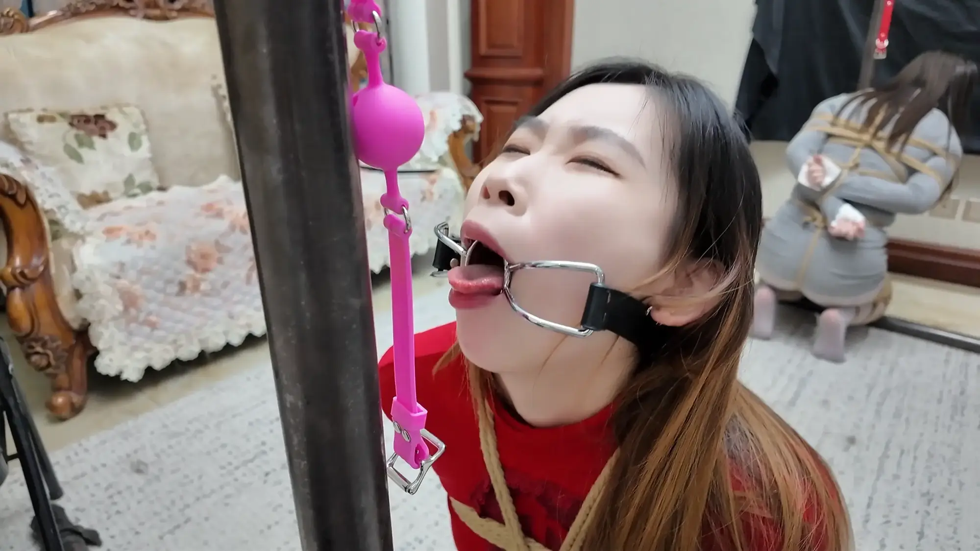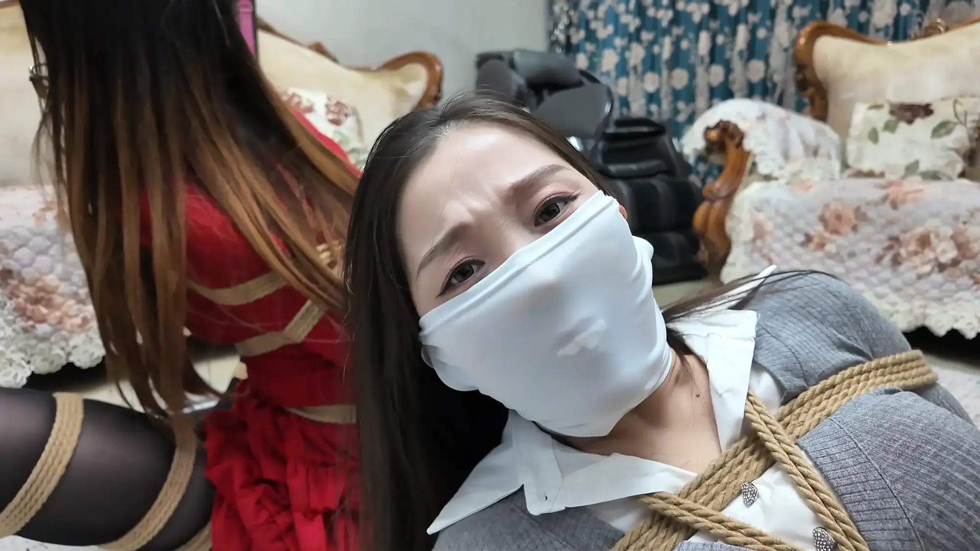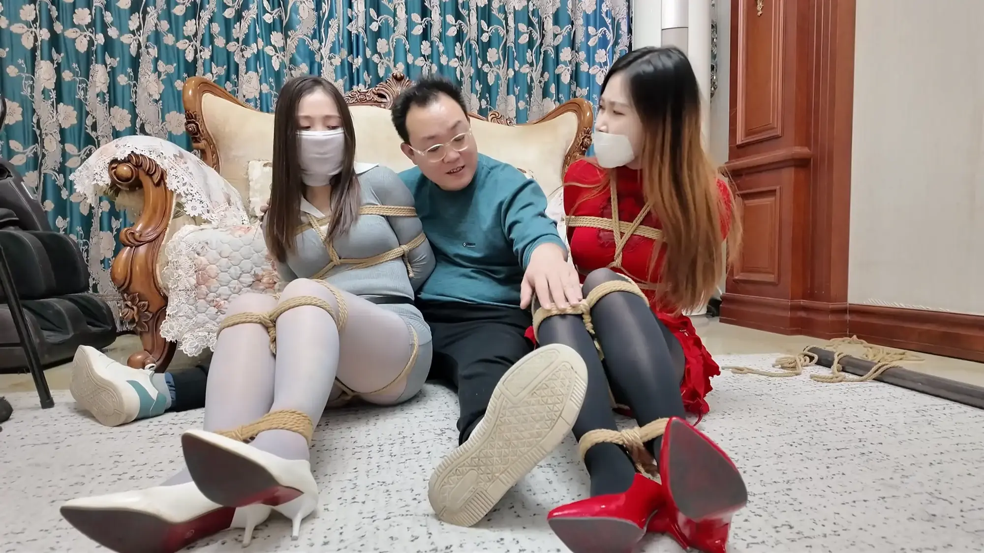 她们只能难过的呜呜抗议,羞耻的忍受着这一切...