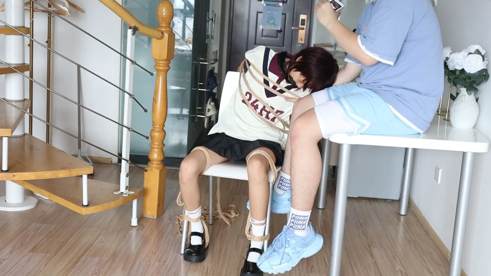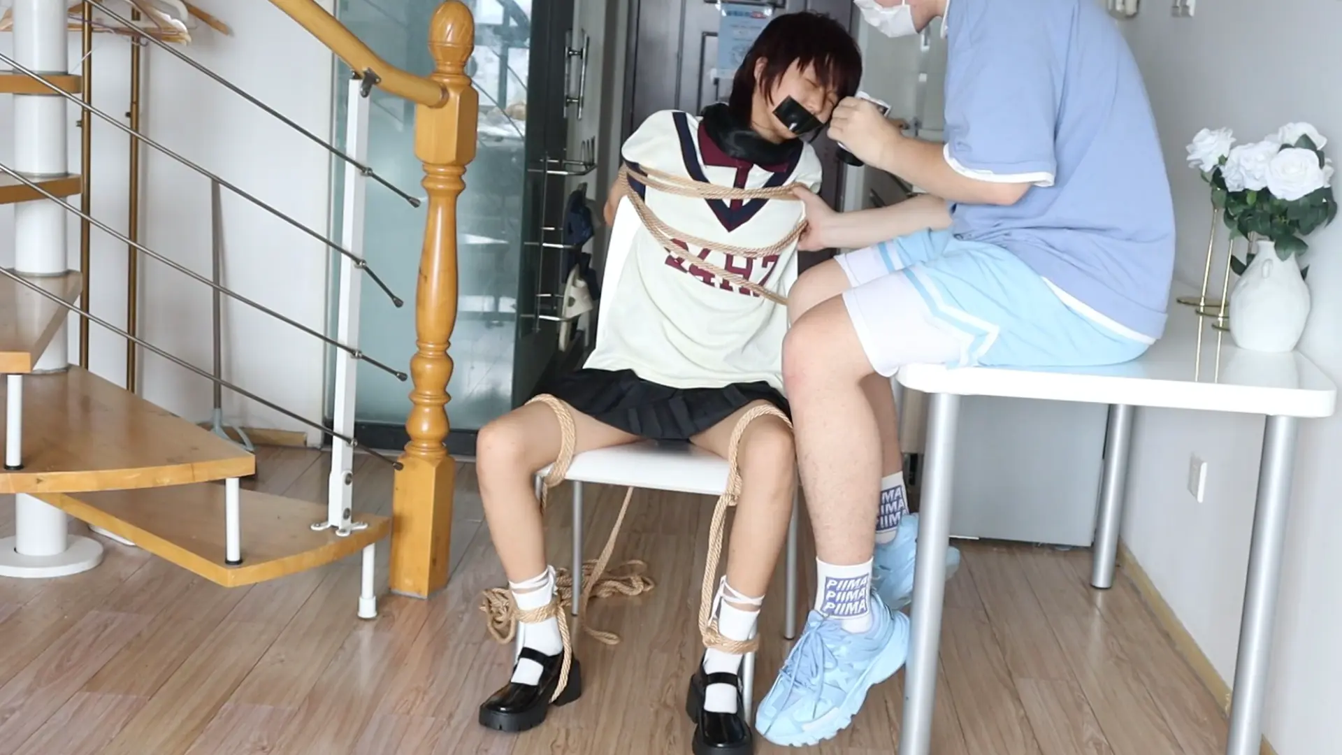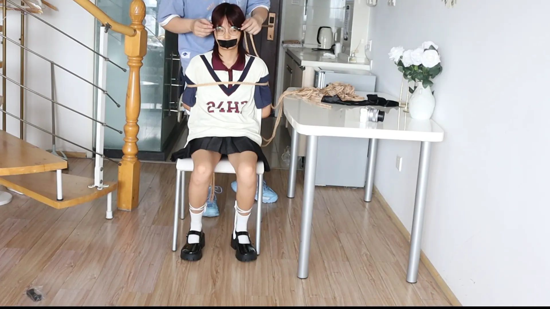 › 眼镜才是本体!!【荷仙少女】眼镜才是小B的本体,露脸萝莉椅子缚和M绑,羞辱挠遍全身的部位,一开始脸呆呆的害羞不敢挣扎的叫喊,直到安抚后才开始发挥本性呜咽,短发萝莉萌萌的眼睛因为tk敏感直接扭曲成一条缝