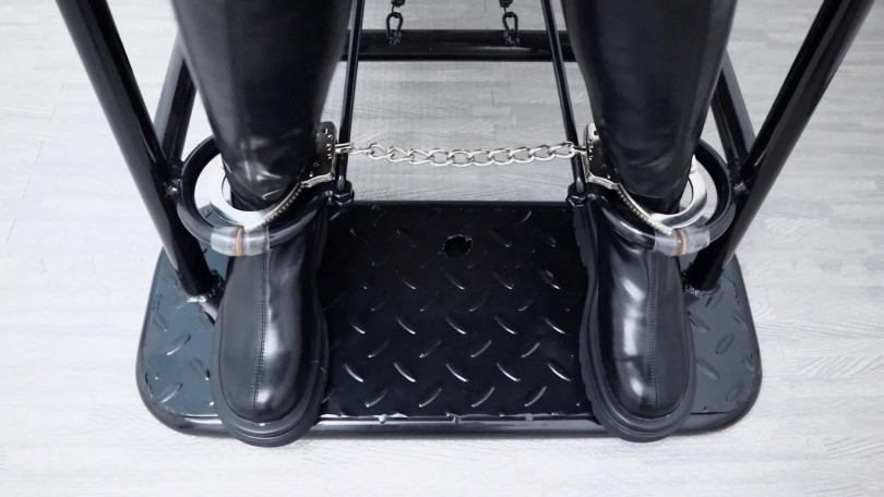 › 【趾间艺束】缓刑犯果果接受脚部检查 灰丝长筒靴口环 挠脚挠全身TK 手铐脚铐