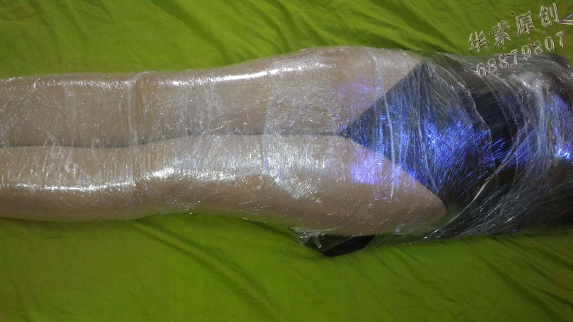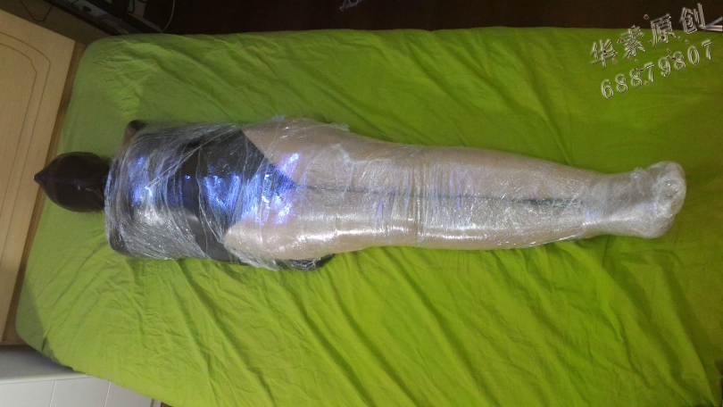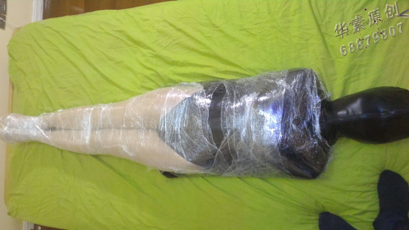 【华素】美女全包胶皮拘束衣+舍宾裤袜外加保鲜膜全包,舍宾丝袜全包保鲜膜的福利!