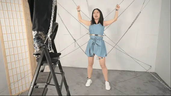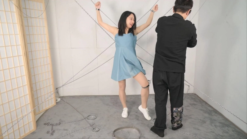 搭建这个铁链阵可是花费了不少功夫,当然不能白白浪费,要让妹子好好体验,这次正好是沐小雨接受铁链洗礼,跟她玩特别热闹有意思,沐小雨每次还会观察用的啥工具惩罚,就喜欢看她见到工具时的惊恐、拒绝和无奈。这次先给她放置个半小时好好体验铁链镣铐还有大腿铐固定,以及股链的深深拉扯。惩罚工具增加了戒尺,最后的筋膜枪可以消耗完她最后那点力气,斜躺在铁链网上慢慢体味这痛并快乐的经历。