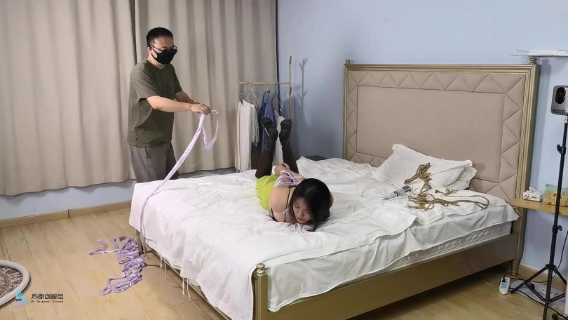 【JS】【李然】《彩丝缚-绿》丝绸驷马捆绑丝袜堵嘴抚摸恋足TD刺激