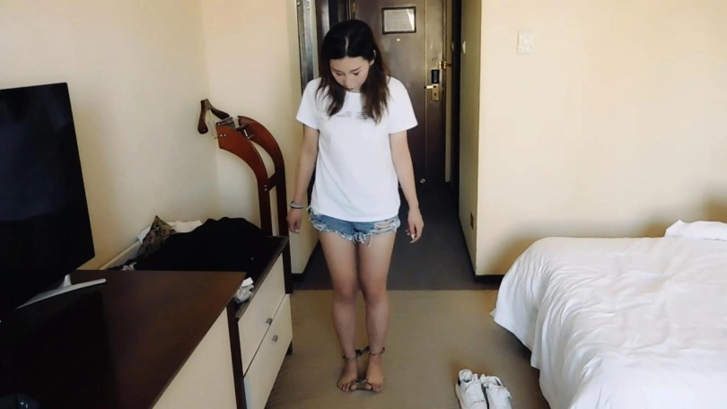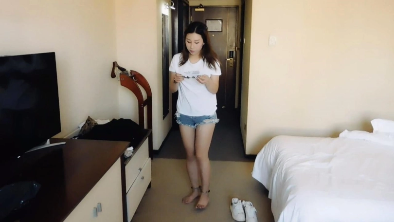 小偷在家中行窃时,遇到保姆妹子回来。妹子看到小偷,十分惊讶,而小偷却谎称他们在拍一个微电影。经过小偷一番精心哄骗,妹子觉得挺好玩的,决定参与。拍摄内容内容是寻找镣铐,找到一个就锁在身上,最后摆出一个漂亮的造型。妹子找镣铐,先找到一把脚铐,锁在脚腕上。然后找到一个链子脚趾铐,脱下鞋袜,锁在脚趾上。妹子慢慢行走,找到一个脚趾铐,锁在了脚上。妹子最后找到一个三通、手铐、长脚镣,决定玩个刺激的,在地板上驷马镣铐。袜子堵嘴,鞋放在头边上。趴在地板上,长脚镣拴住一只脚,手铐锁住手,三通锁上脚和连接手。妹子很享受整个过程,很开心。这时,小偷原形毕露,带走了偷来的东西,并且把保姆扔在地上,自己逃跑了。妹子这时才觉得上当了,却怎么挣扎也弄不开,着急了,要哭了。