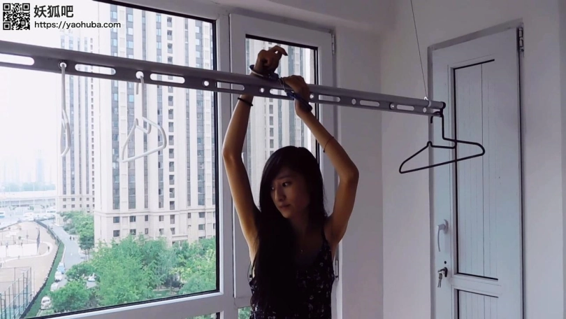 安艺真的是大长腿美人,不过似乎是个冰美人哎,冰美人和镣铐更配哦!!!女神独自在家寂寞了,竟然在窗前晾衣杆上玩镣铐自缚,双手吊起来,结果钥匙掉地,自己解不开了哈哈哈!!!太傻了!!!还被合租的男室友发现了,这下可有的玩了哈哈哈!!!