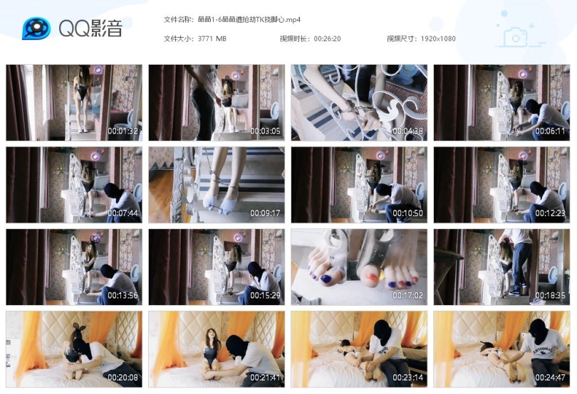 妹子在等朋友回来,劫匪却偷偷闯入,把她弄到台阶上,手锁在栏杆里,脚镣拴住一只脚,戴上脚铐,脱下鞋,戴上脚趾铐,挠脚心。挠了一会,解开脚趾铐,脱下袜子,再锁上,并把脚趾和脚腕连起来,继续挠。又挠了一会,劫匪把妹子抱起来,躺在床上,继续挠脚心。劫匪把妹子弄趴下,继续挠脚心,直到妹子说出密码,劫匪扔下妹子离去。