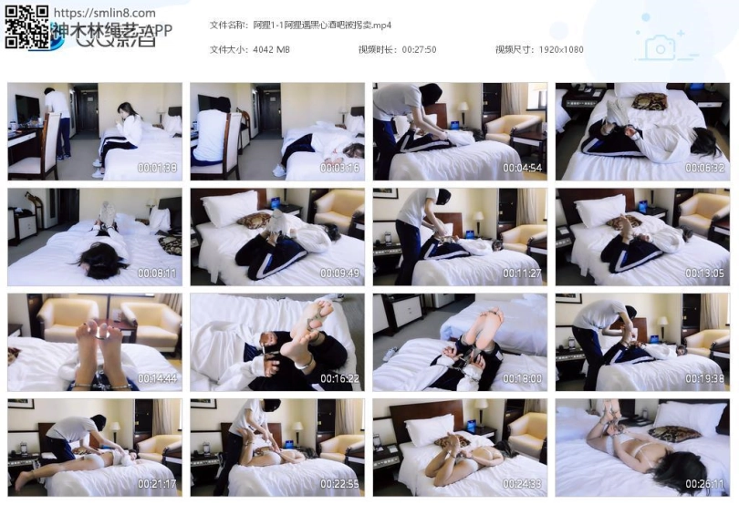 妹子来到酒吧喝酒,然而酒吧老板是个人贩子,偷偷给她的酒里下了药。妹子过了一会,就感觉不对,然后就晕过去了。这时老板觉得新弄的药还挺管用,有妹子可以玩了。老板把她驷马锁在床上,等她醒来。妹子醒来,发现自己被锁住了,十分惊慌。老板出现了,开始调戏妹子,脱下鞋袜,锁上脚趾、脚心、拇指。妹子更加惊慌,不断求饶。老板来解开镣铐,脱下了她的衣服,只剩内衣,检查身体无误后,再全部锁上,更是一顿调戏,然后离开。留下妹子挣扎,等待明天的拐卖。