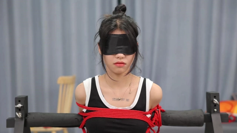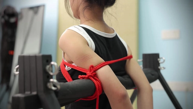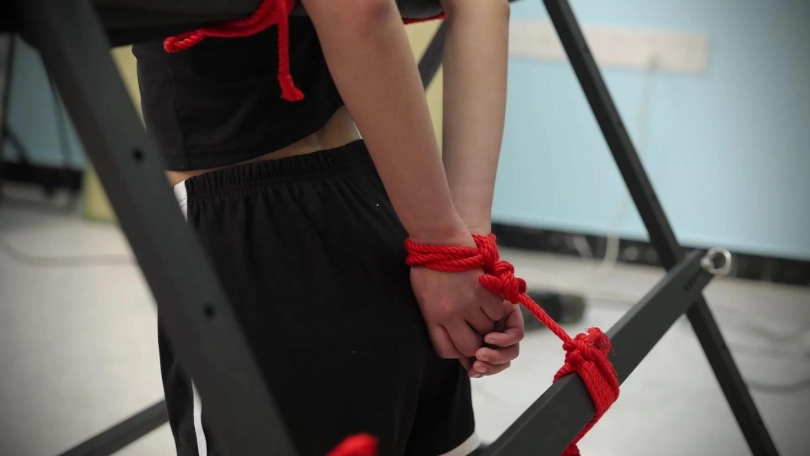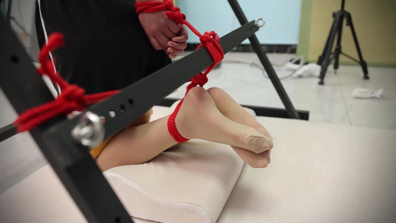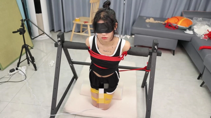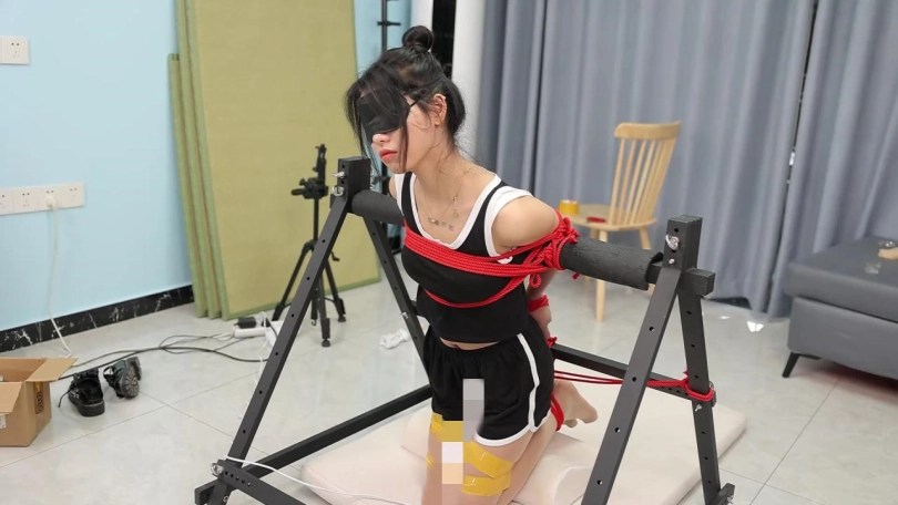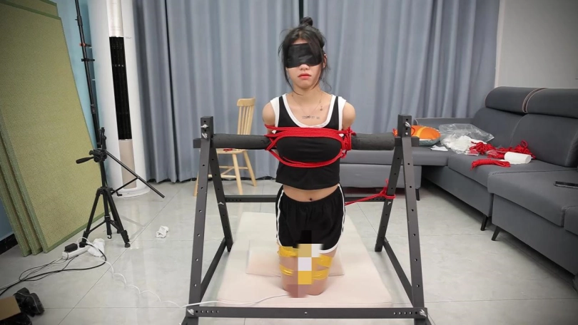 【心悦艺束】性感苏苏双手后拉,吊起双脚,与铁架融为一体。忍受主人对小胸脯的玩弄和棒棒的双重刺激。内向的性感让她默默忍耐,挣扎的动作揭示她躁动的内心。