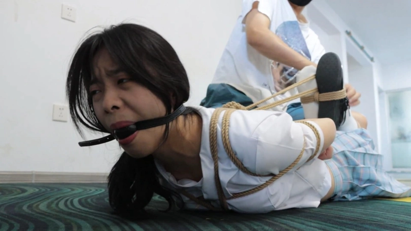 ——琪娜:这种绑法比前两种紧好多,我的手和脚都背在后面,根本没有办法碰到地板,这要怎么完成啊。 不行,就快了,不能在这里放弃。