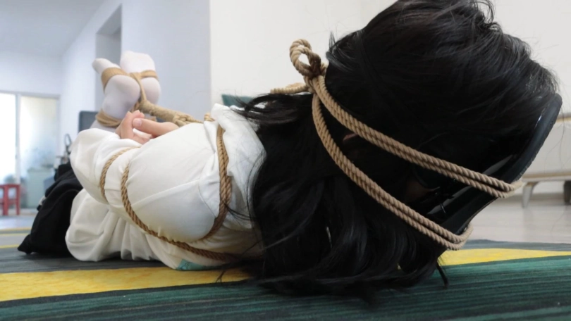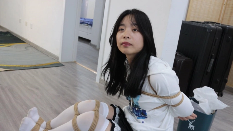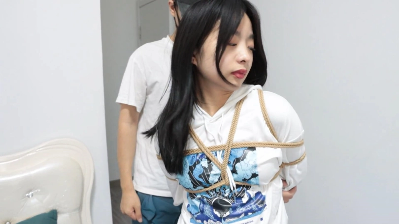 (哥哥拿出绳子,按照绮娜的要求把绮娜的双腿绑起来,随后绮娜挣扎几下)