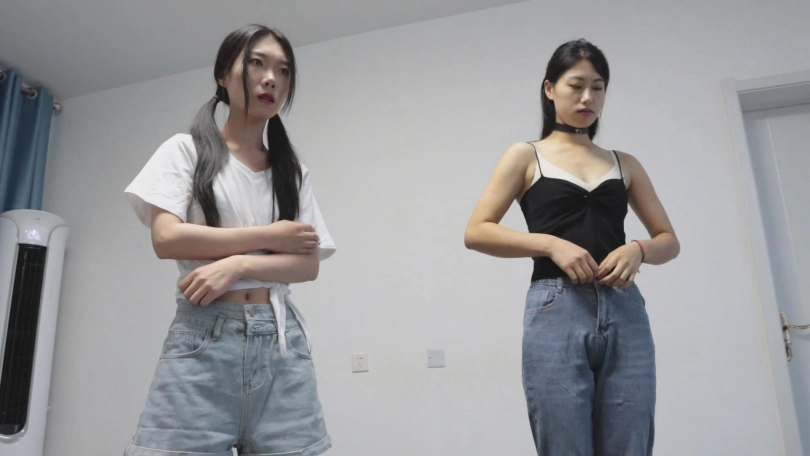 此话一出,二人犹如听到惊天霹雳一般不知所措,率先反应过来的则是妹妹,没有多余的抱怨与反抗,妹妹呆呆的顺从普信男的话,将自己的衣服脱掉,之后又将手伸向自己的裤子,即便面对姐姐的质问,也仍然坚持将衣服全部脱掉,只剩下身上的白色内衣与一双白色船袜。