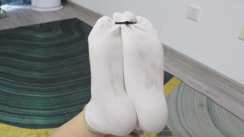 此次的神秘连缚姿势也揭晓了,灵感来源也非常凑巧,刷某些自媒体的时候偶然看到的一对外国姐弟的打闹vlog,姐姐将弟弟压在身下,穿着脏棉袜的脚对着弟弟的脸,我将这个姿势进一步改良了一下,不过原本我的想法是让青岚的脚更凑近绮梦的脸,造成一个双向闻脚的,但似乎体型差距过大,所以没能实现,导致只有青岚单向受苦(不过毕竟在堵嘴上扳回一城),而这一集中也终于到了我心心念念的双人互相用彼此的原味堵嘴的剧情,很早很早之前就想拍一次这个了,可谓是重头戏!