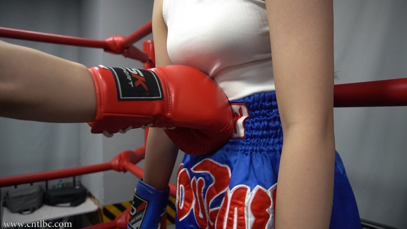 Shuya (blue gloves) and Liuya (red gloves) were two new boxing girls. They had a boxing match. Although they were both novices, they were very confident in themselves. Before the start of the match, they taunted each other to try to gain the upper hand in the fight. They both tried their best to win the match...