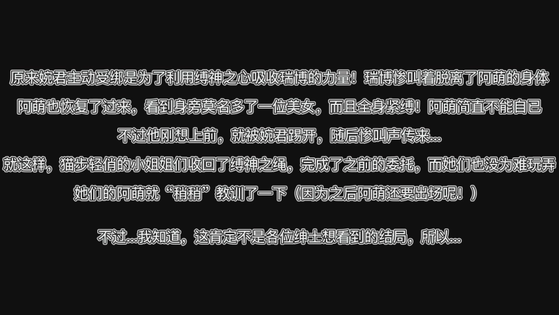 猫步轻俏的小姐姐只剩婉君一人了,此刻的她为了救出姐妹答应了阿萌的条件