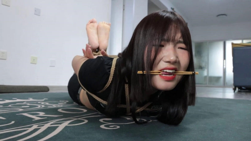 后来她想到了驷马,她在命令绳子把自己绑成驷马的姿势,绳艺用念力脱掉了她的黑色丝袜,并用口球堵上自己的嘴巴。没过多久她就被绑成了驷马的姿势