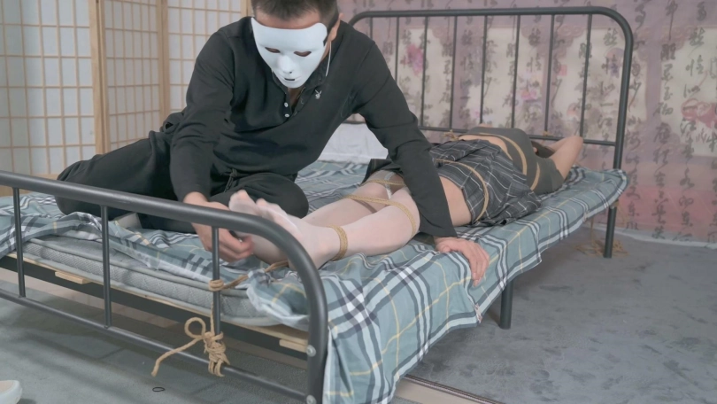 绑个心仪的妹子当做抱枕是个不错的主意,也是男人的梦想之一,一道道绳索紧固,手脚栓在床头床尾,等她挣扎累了就开始TK,又发现了雪碧敏感的地方,那就是脖子前面,额哈哈,等TK累了就可以抱着睡觉觉了。